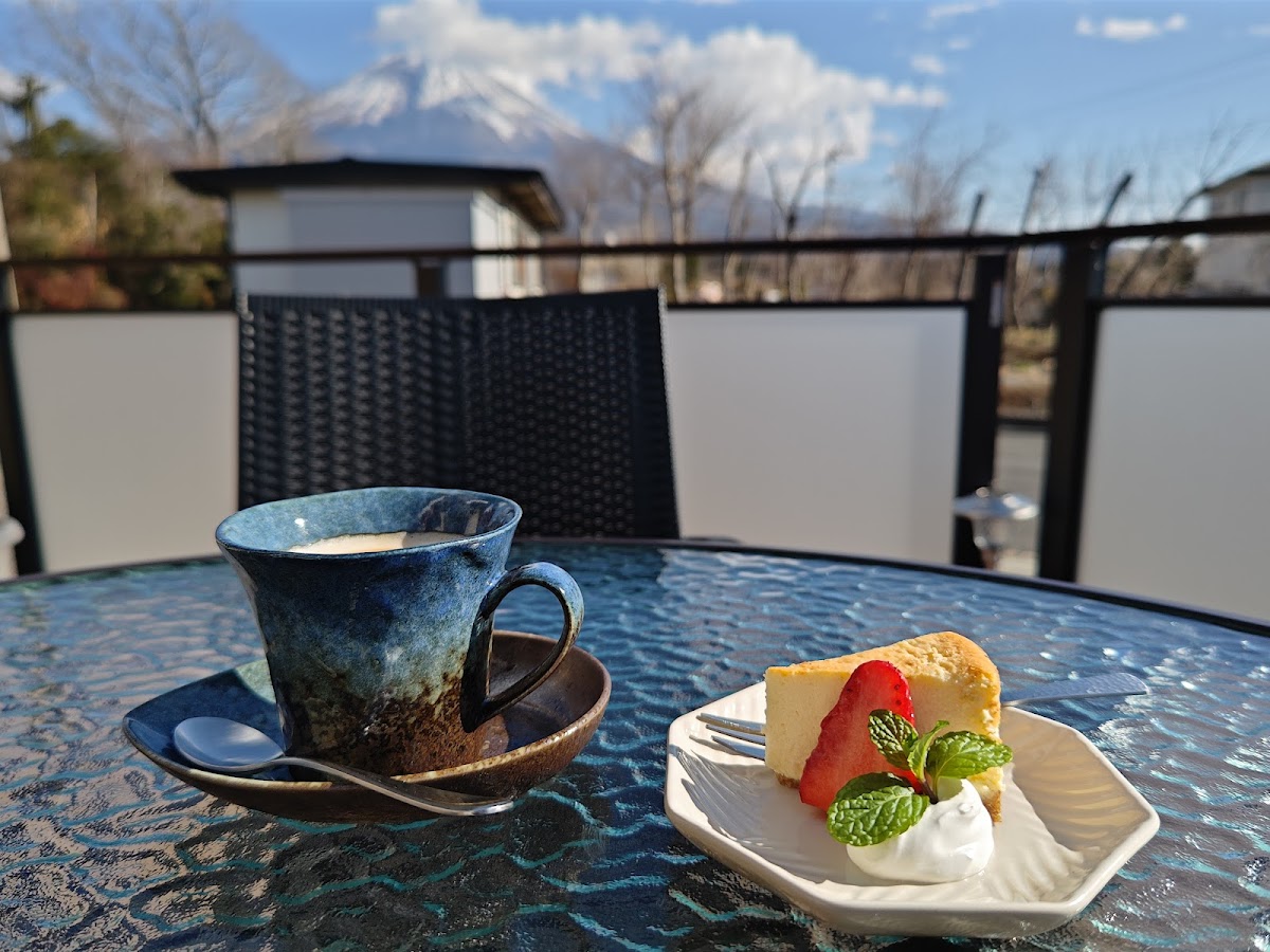 As you step inside, the welcoming atmosphere instantly captivates, with a delightful terrace seating area surrounded by lush greenery. It's a slice of paradise where you can relax and enjoy your meal while soaking in the gentle breeze, possibly with the majestic view of Mount Fuji in the distance.